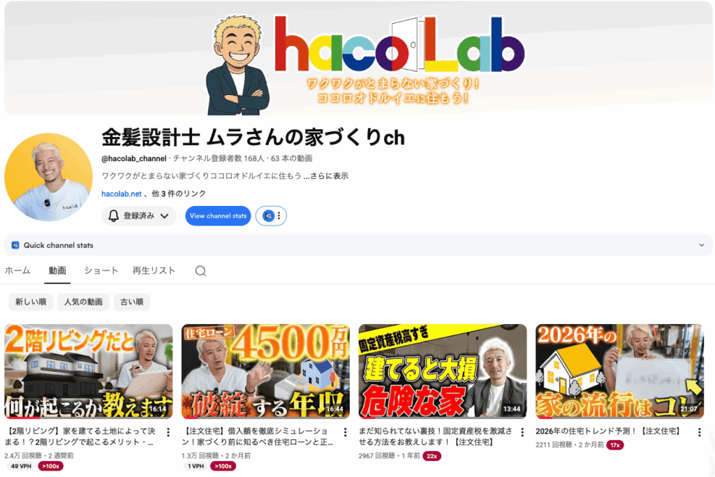 レガ株式会社様 2026 2/20 制作実績 WORKS レガ株式会社 様 【概要】 契約:YouTube運用プラン担当:企画/台本/撮影/編集/サムネイル/投稿/分析成果:家づくりに関するノウハウ動画 平均再生回数:300回→4000回 ▼チャンネル概要はこちら 制作実績一覧へ戻る Contact us 仕事のご依頼やご相談など、お気軽にお問合せください。 無料でお問合せをする Contact us 仕事のご依頼やご相談など、 お気軽にお問合せください。 無料でお問合せをする 制作実績